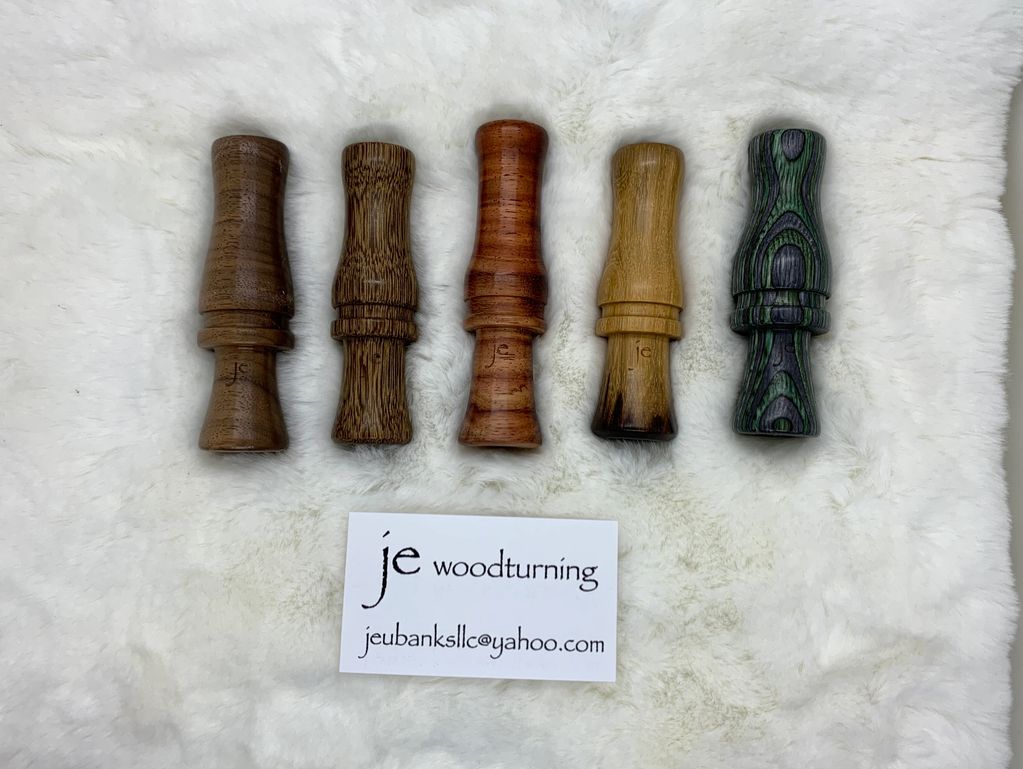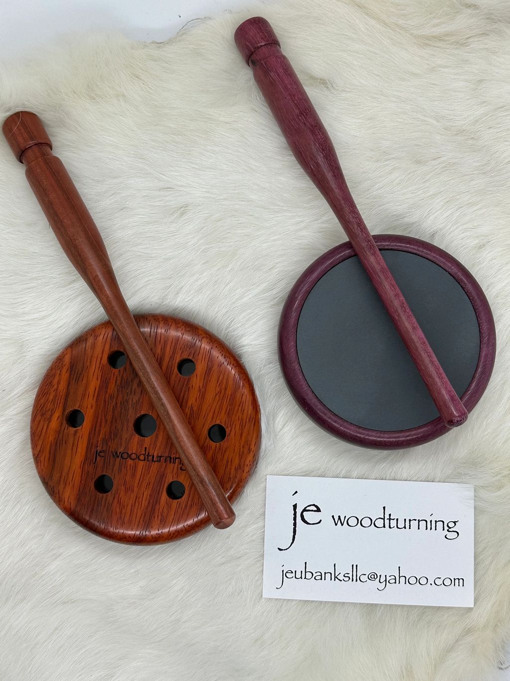 Hand Turned Turkey Pots pictured in Padauk (red) and Purpleheart, Slate over Glass